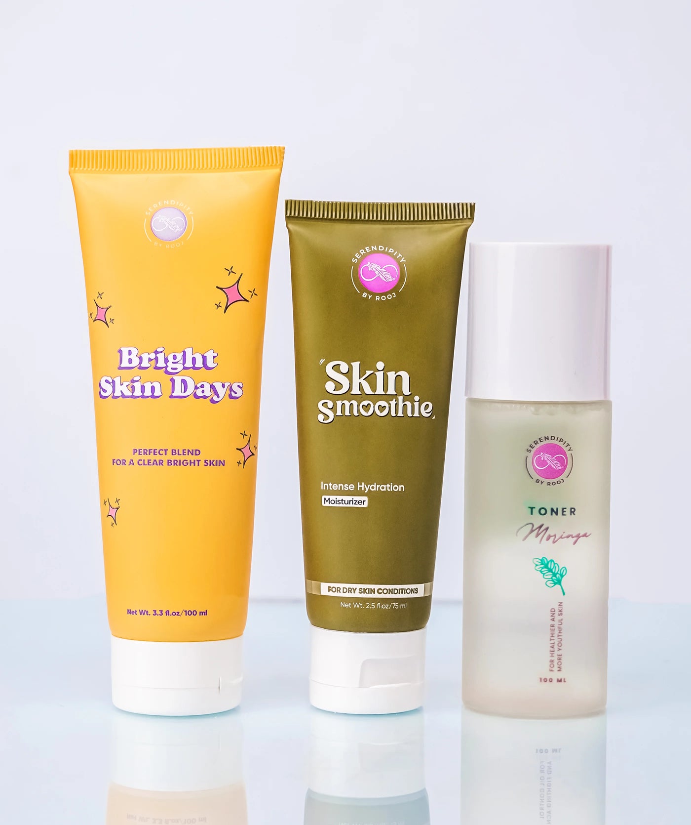 A smooth, more youthful skin with our Trio Treat Bundle. Gently Cleanse the skin with ‘Bright Skin Days Face Wash’. Followed with ‘Moringa Toner’ to refresh and balance the pH. Lastly seal in the goodness with the ultra-hydrating Skin Smoothie Moisturiser’ for a radiant, age-defying glow. Welcome each day with confidence and timeless beauty.